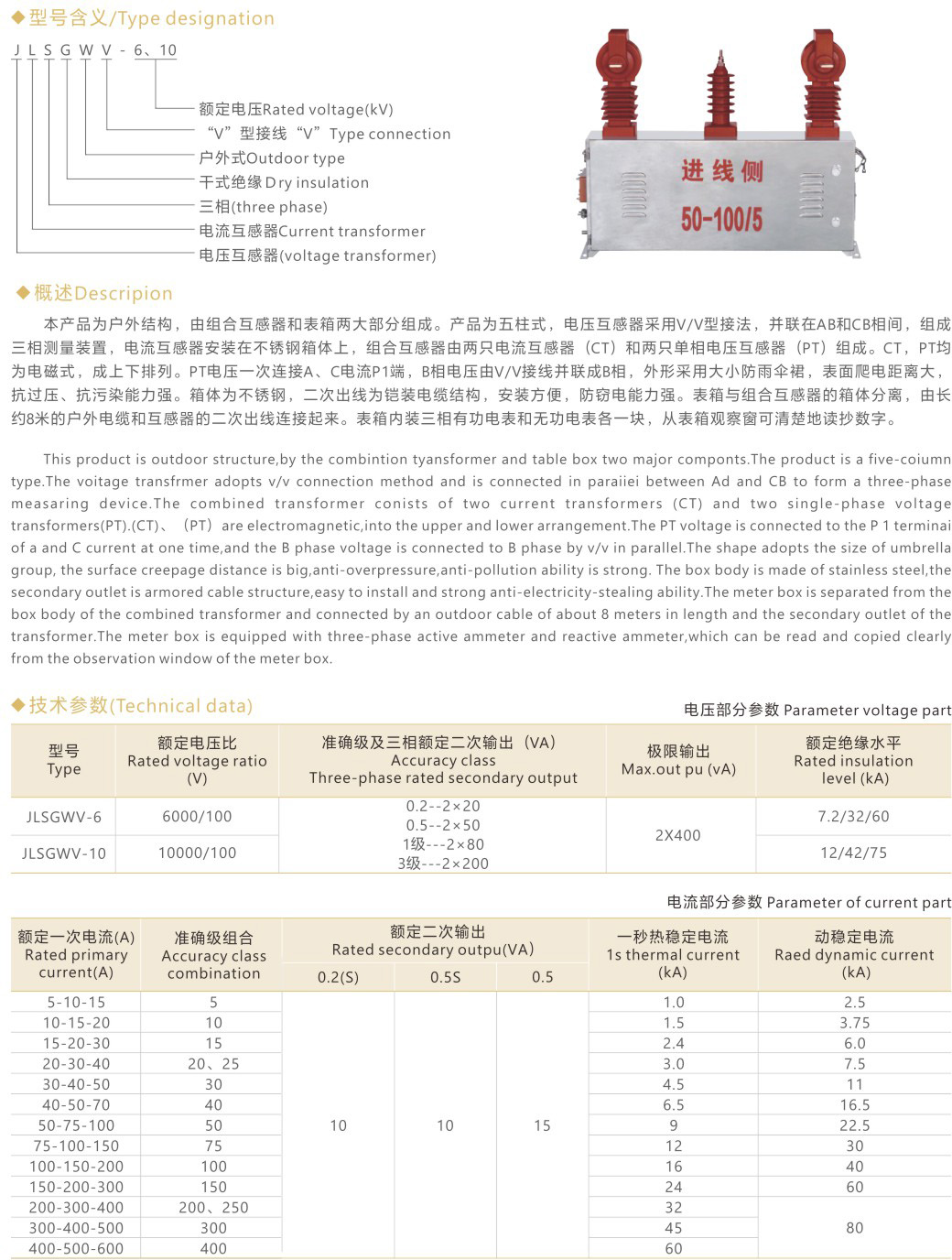 JLSGWV-6、10 型组合电压互感器