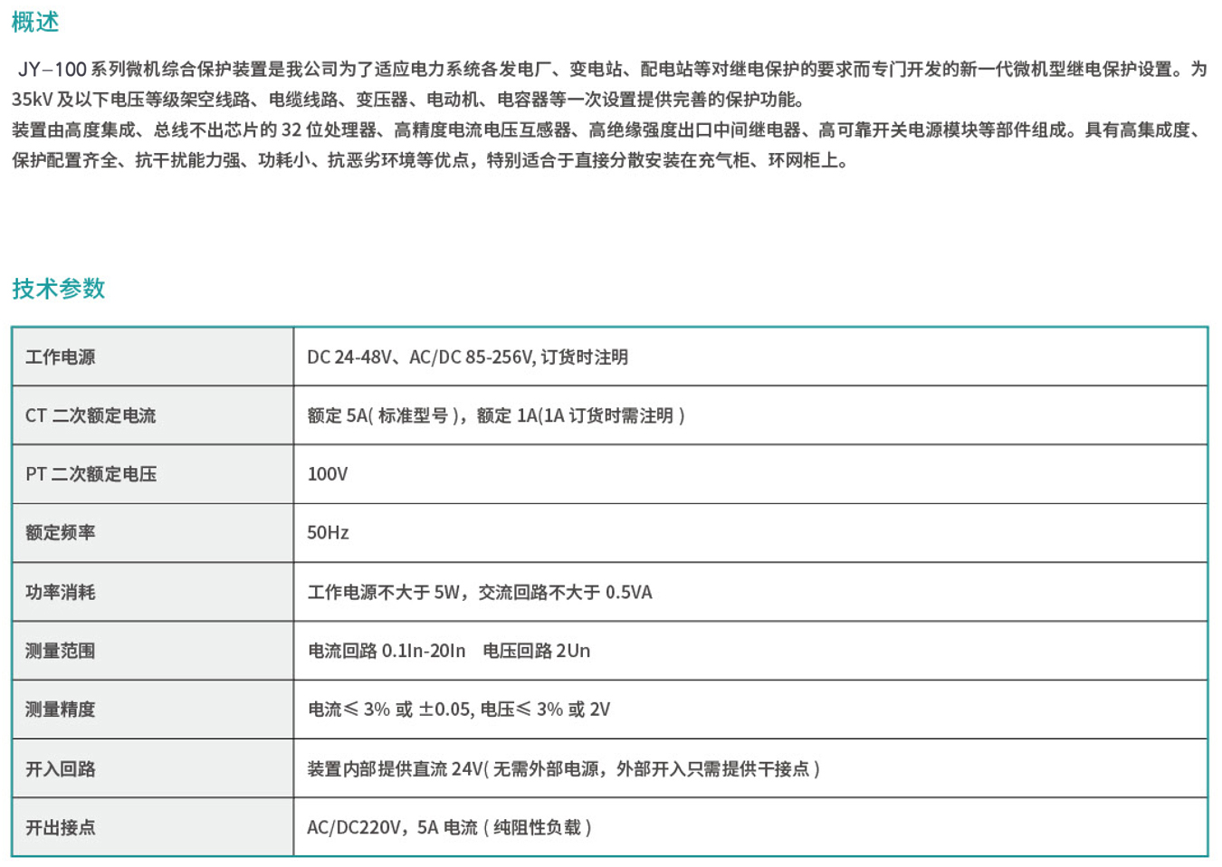 JY100Z系列自供电微机保护装置