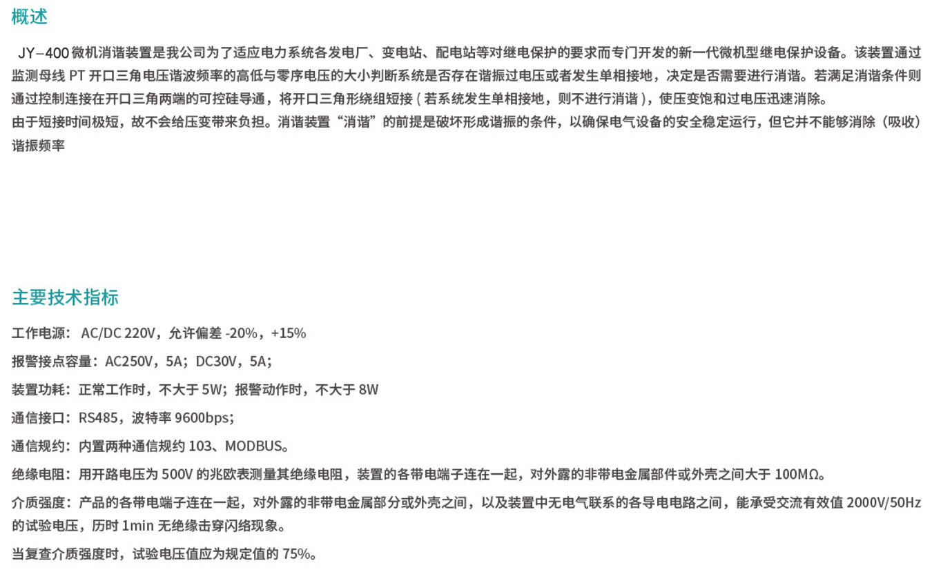 JY400系列微机消谐装置