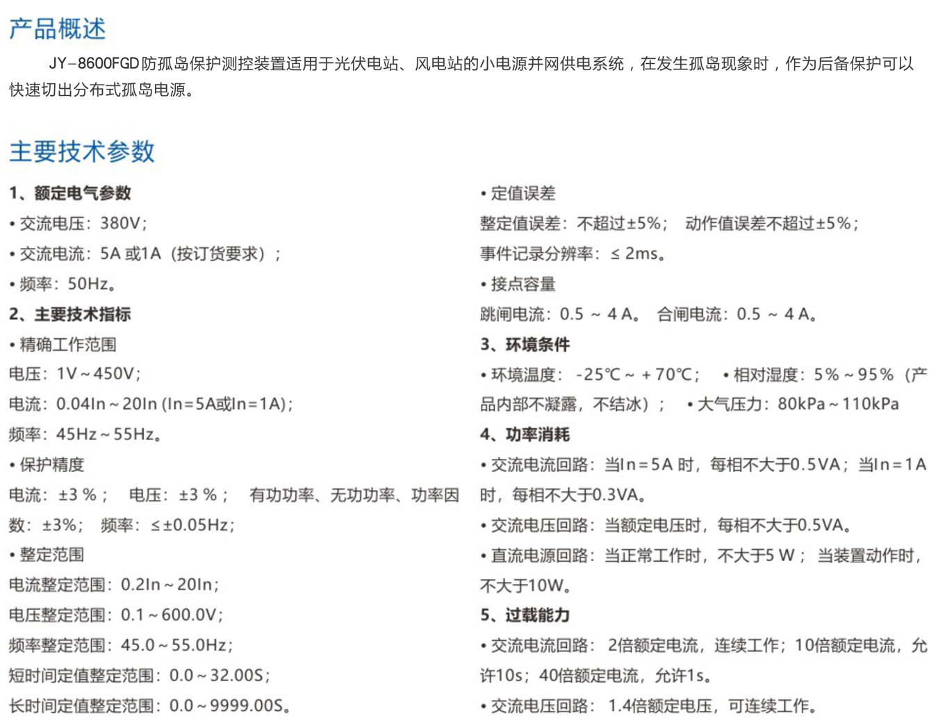 JY9100系列防孤岛保护装置