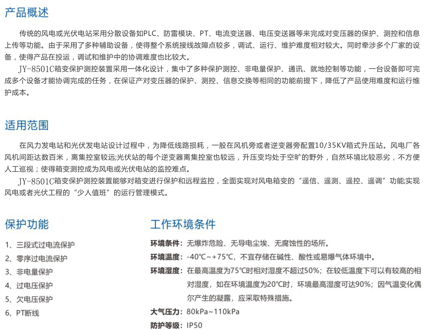JY8501C箱变综合测控装置