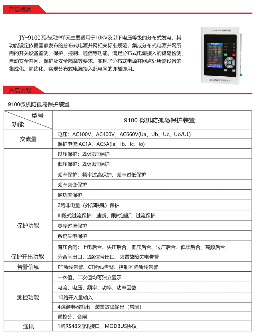 JY9100系列防孤岛保护装置