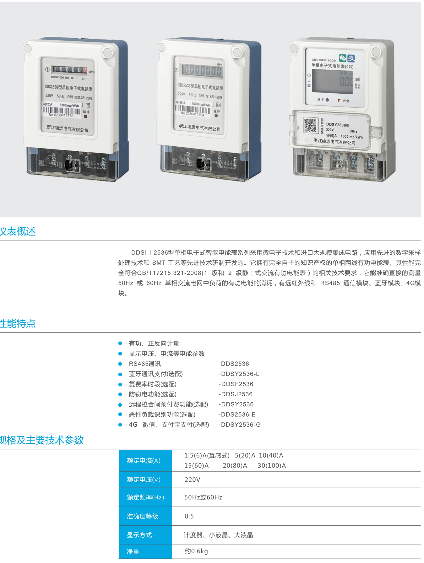 DDS2536型单相电子式电能表